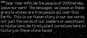 Project Year 4000 has two official sites - this web site and a plot of land with permanent granite stones.